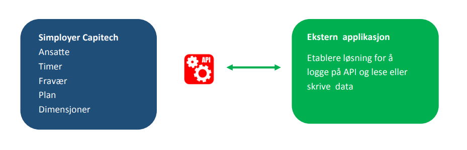 Her finner du informasjon om våre API for effektiv utveksling av data mellom systemer, hva som finnes og hvordan de kan benyttes. Simployer Capitech tilbyr standardiserte API integrasjonsgrensesnitt som kan bestilles og benyttes til å realisere ønsket flyt av data mellom systemer.