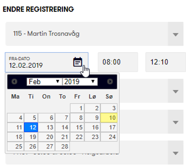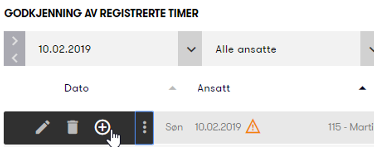 Dette er nyttig hvis du skal registrere en lignende vakt eller timeføring på en annen dato eller med et annet klokkeslett.