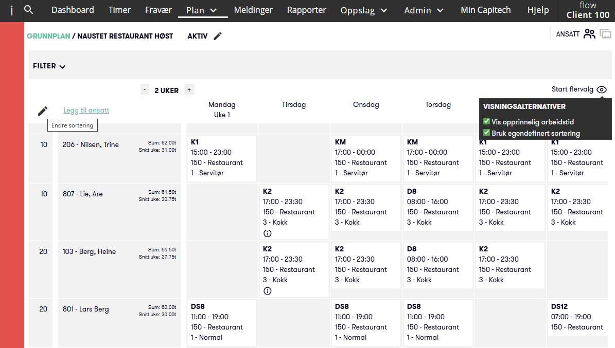Det er nå mulig å aktivere og bruke egendefinert sortering av ansatte i Grunnplan, på samme måte som i Operativ Plan. Dette gjør det enklere å samle og få oversikt over ansatte som jobber sammen.
