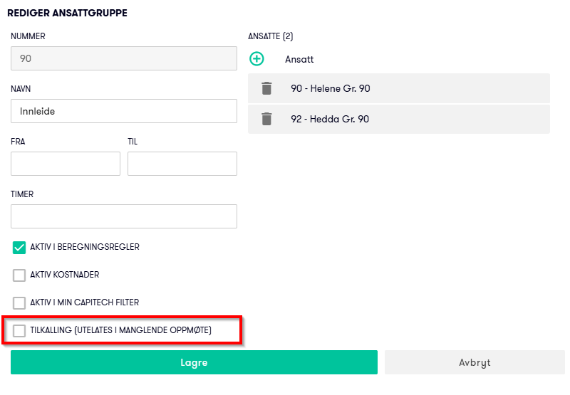 Ansatte i denne ansattgruppen vil da ikke lenger vises under Manglende oppmøte.