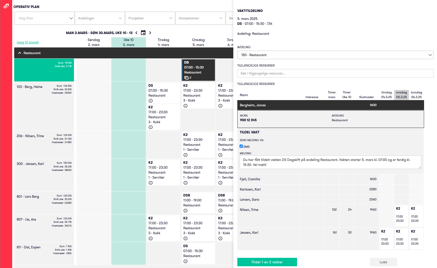 - SMS-støtte ved tildeling av vakter i Operativ Plan