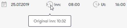 Et ikon på timeregistreringen viser hvordan registreringen er opprettet.