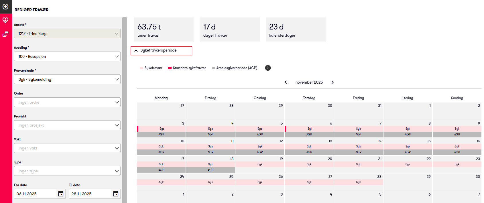 - Fraværskalender med arbeidsgiverperiode i sykefravær