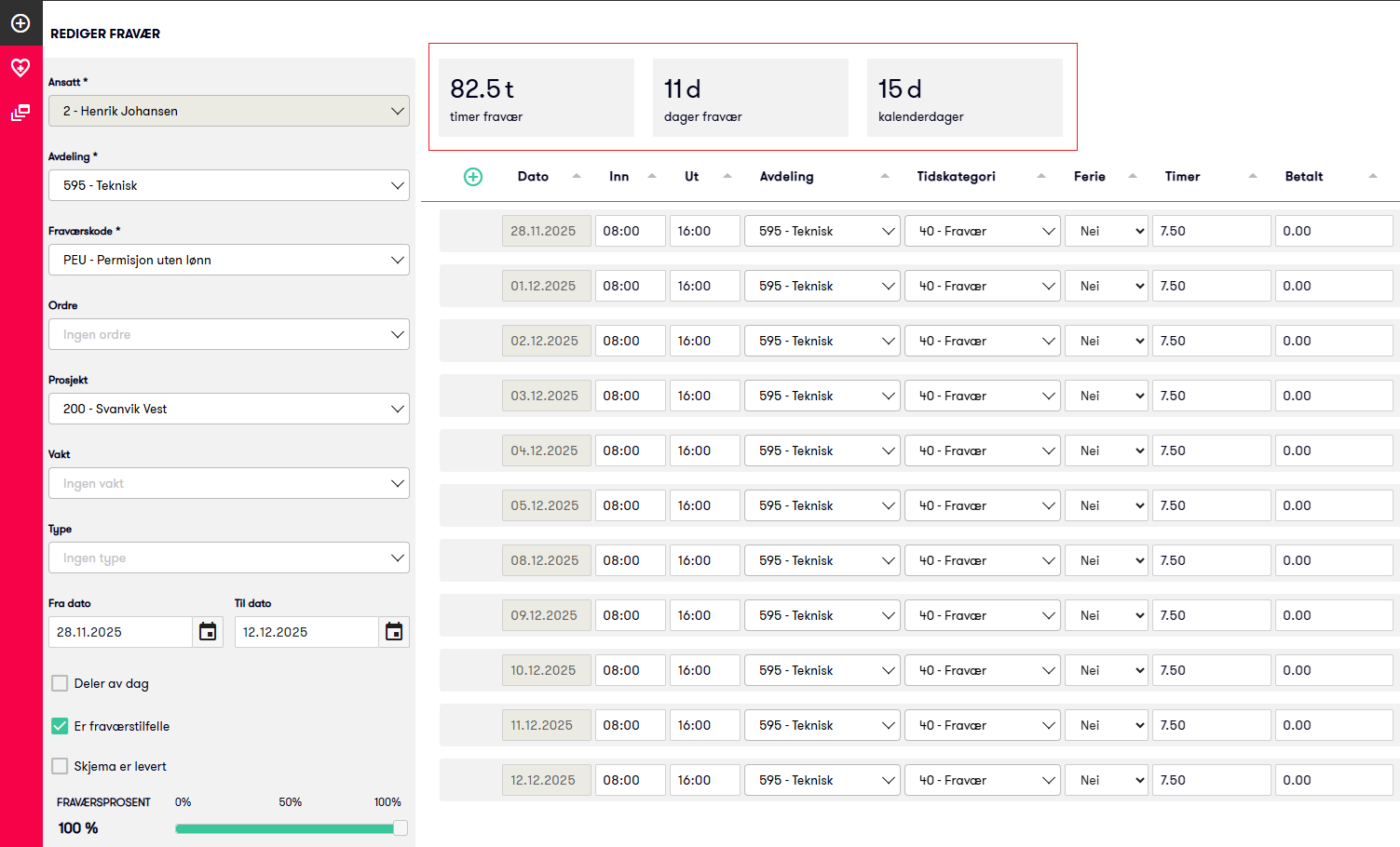 Dette gjør det enklere å få rask oversikt over hvor mye fraværet utgjør i den aktuelle perioden.