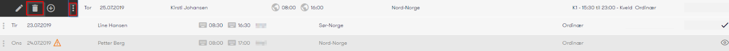 - Klikk på de tre prikkene til venstre på registreringen.